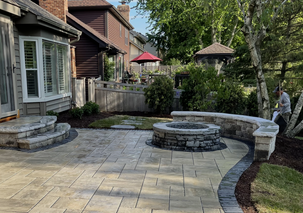 From a dated deck to a permanent sanctuary. This backyard overhaul features a custom gas fire pit and elegant stone seating, all anchored by high-quality pavers built to last a lifetime. Because these materials require very little regular maintenance, this transformation is as practical as it is beautiful—maximizing every square foot for years to come.